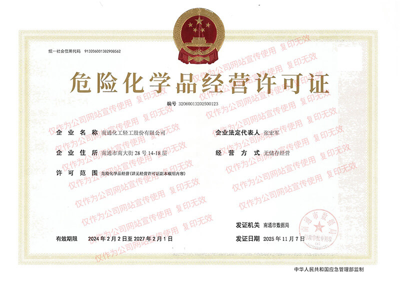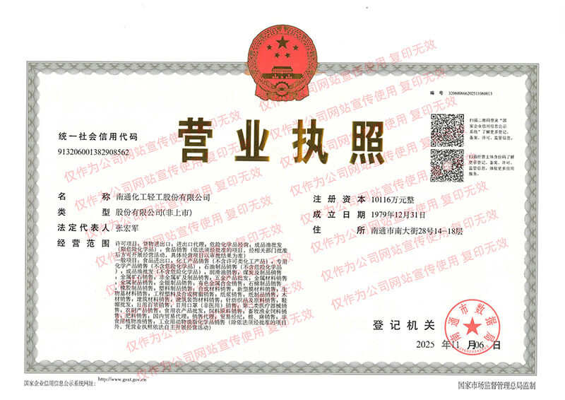 南通化工輕工股份有限公司成立于1963年7月1日, 1997年改制為股份有限公司,注冊資本10116萬元。公司自1963年成立以來,始終堅持“誠信為本”的商信文化,向海內(nèi)外廣大供應(yīng)商按時足額履行付款、向廣大客戶按時按質(zhì)按量按價履行供貨、向金融機(jī)構(gòu)按時足額履行還款等,在商界享有很高聲譽(yù)。